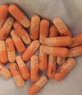 Shape/Color: Black and Orange Capsules